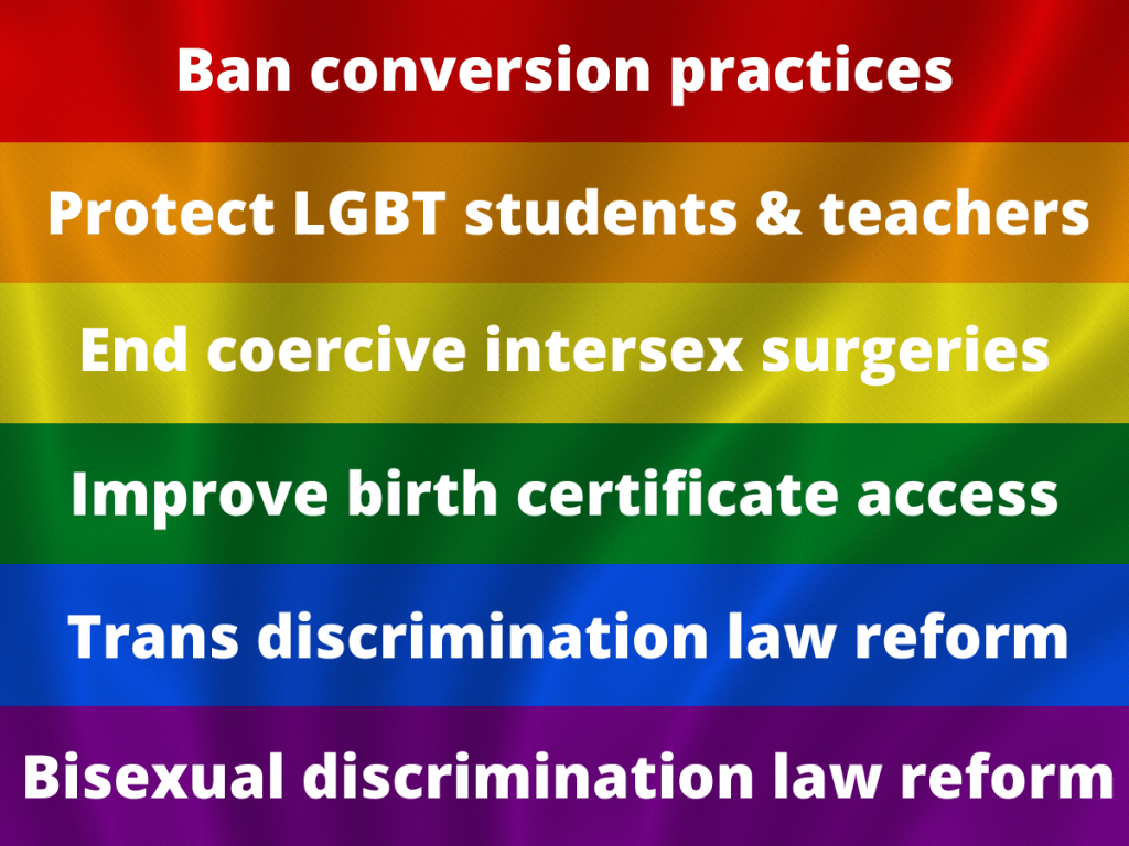 But, in my opinion, these are some of the most essential reforms in order for people to feel pride that we are making real progress in overcoming homophobia, biphobia, transphobia and intersexphobia.