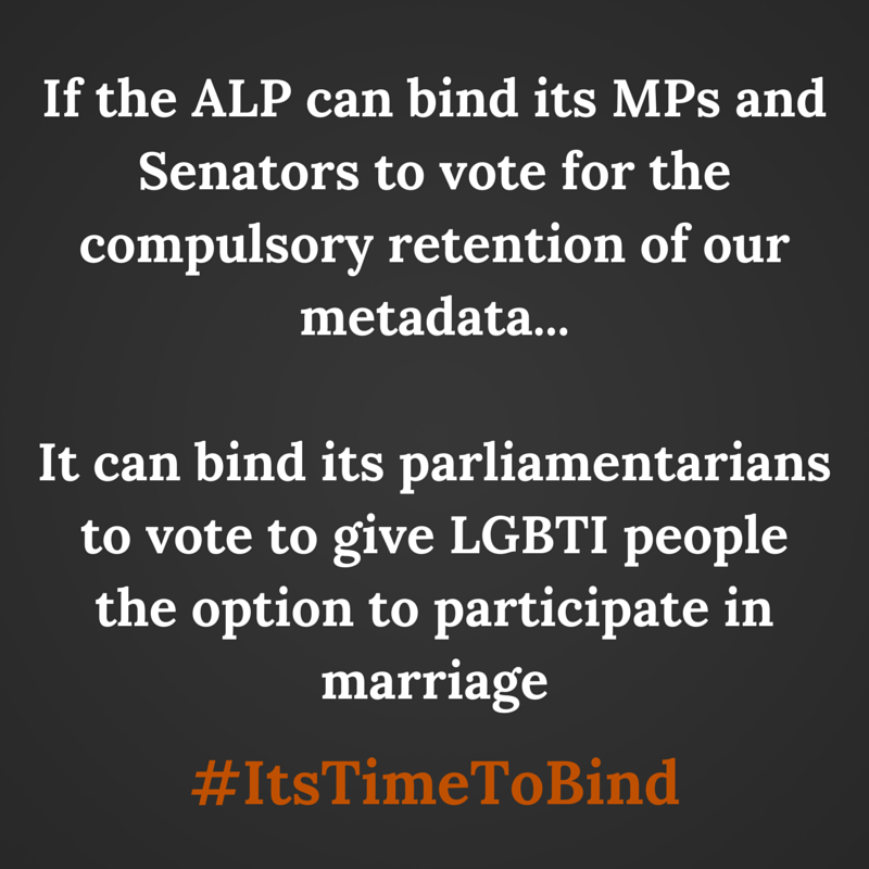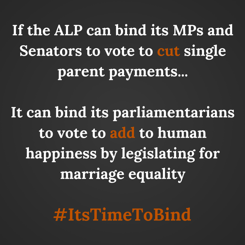 The original post “Hey Australian Labor, It’s time to bind on marriage equality” from July 2014: <https://alastairlawrie.net/2014/07/13/hey-australian-labor-its-time-to-bind-on-marriage-equality/